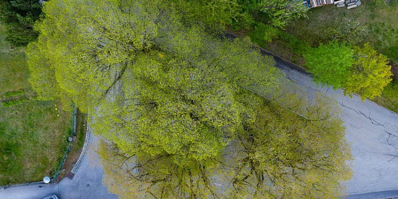 Der Zeitpunkt war genau richtig. Die Blätter der Linden über der Kohlbauerkapelle waren schon ausgetrieben, ohne aber den Blick auf das Geäst der Bäume zu verdecken. So ist es möglich, mit den hochauflösenden Fotos einer hochwertigen Kamera den Zustand der Linden bis ins Detail fotografisch zu dokum...