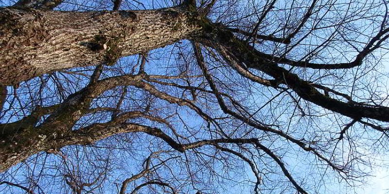 Im Winter 2020 gab es wenig Schnee. Die Linden der Kohlbauerkapelle zeigen ihr beeindruckendes Geäst, das spannende und anregende Blicke in die entlaubte Krone zulässt. Kaum vorzustellen, dass diese Krone im Sommer so üppig wird und eine Blütenpracht hervorbringt.